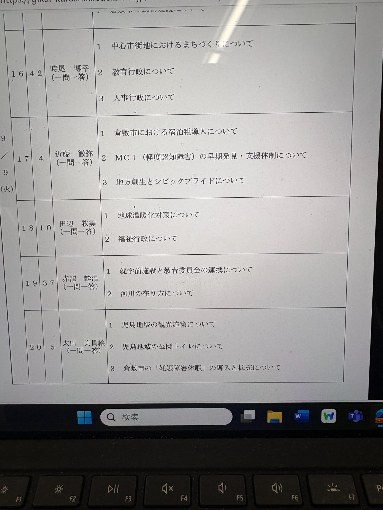議会質問は明日が最終日です。