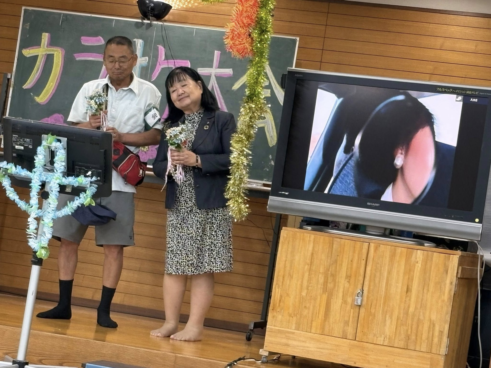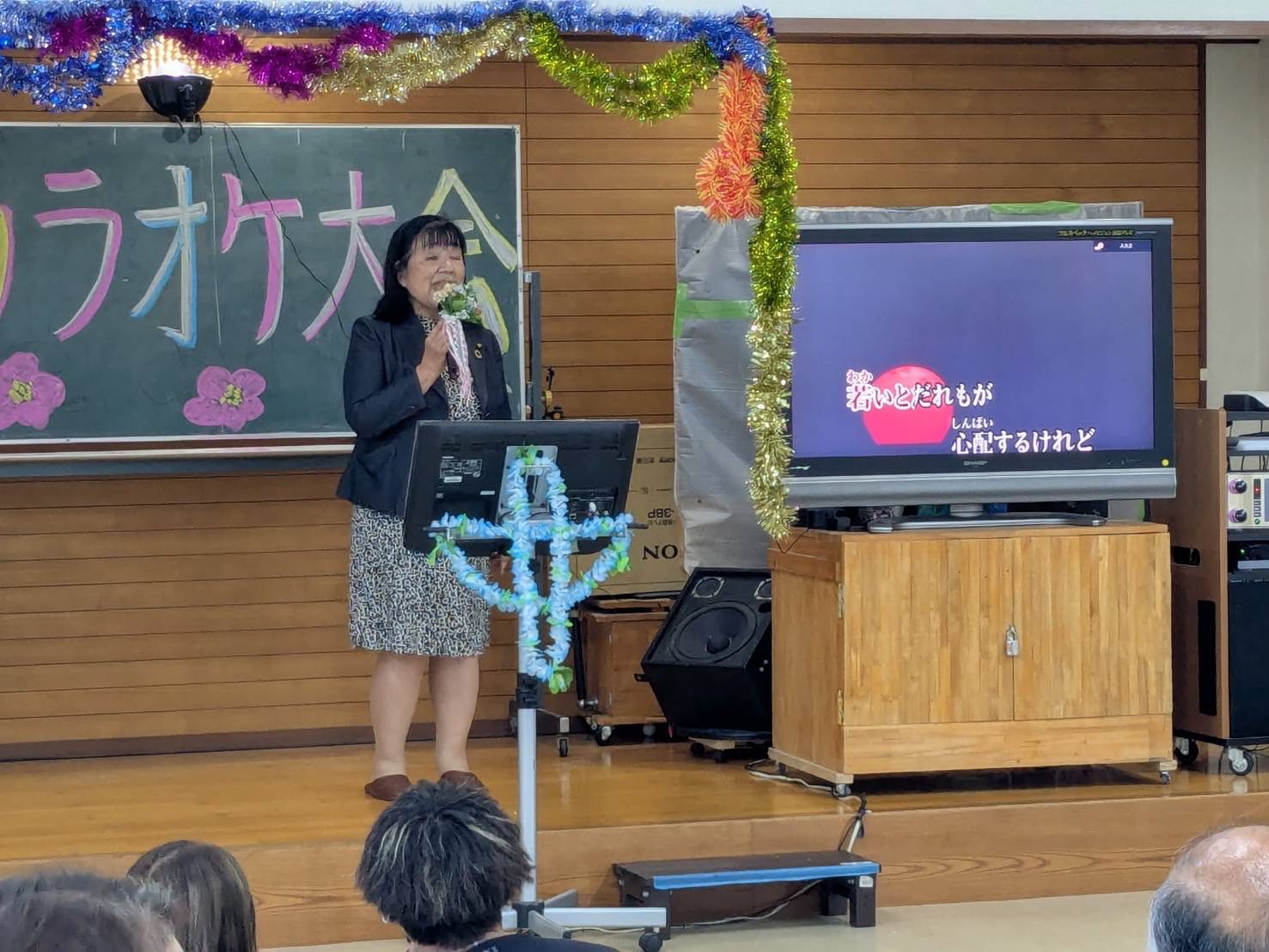 グリーンライフの夏祭り 活動報告 2025-09-27 午前中は、友人に付き添いで、成人病センターに行きました。 順調とのこと、安心しました。ランチを二人で食べました。その後、ちょっと時間がありましたので、吉備路に行きました。ソフトクリーム!美味しかったです。 16時から、グリーンライフの夏祭りで、ご挨拶、カラオケを歌いました。まだ、 高音がでないのですが、どうにか歌えました。 最後に町内会長さんとのディエット! ありがとうございました。