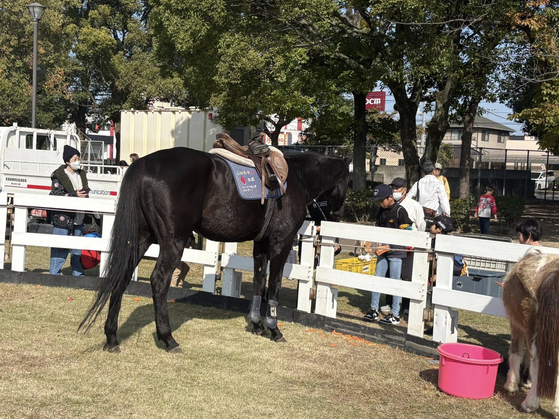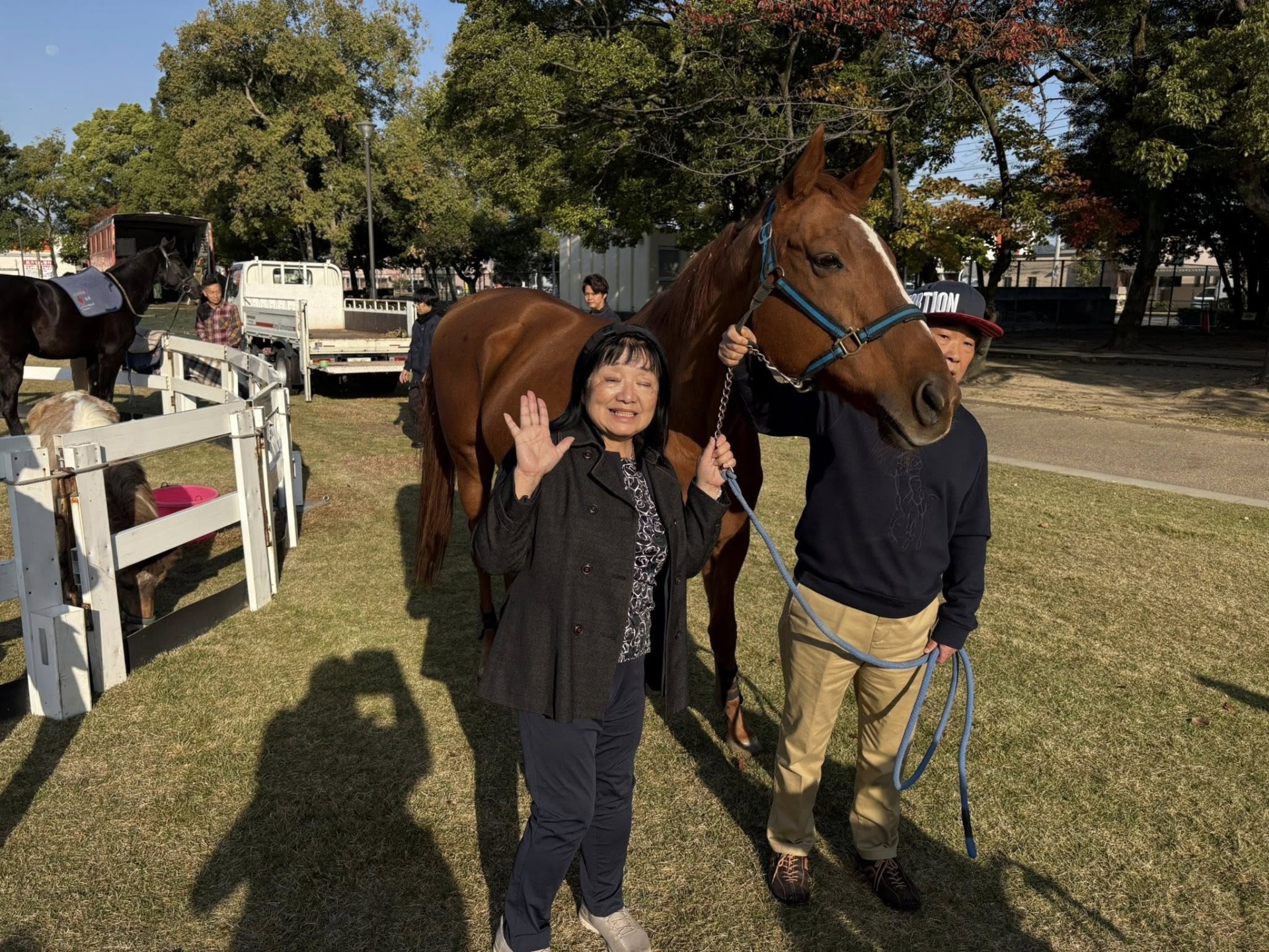 障がい児と馬のふれあい教室 活動報告 2025-11-08 今日は、障がい児と馬のふれあい教室を水島緑地公園で行いました。 心配していました天候も、晴天となり、爽やかな環境のもと開催されました。 予約いただいた障がい児の皆さんが、嬉しそうに馬に乗っていました。 りんごやにんじんの 餌やりも手のひらに載せてしていました。 多くのボランティアの皆さん、ありがとうございました。関係者の皆様、お疲れ様でした。
