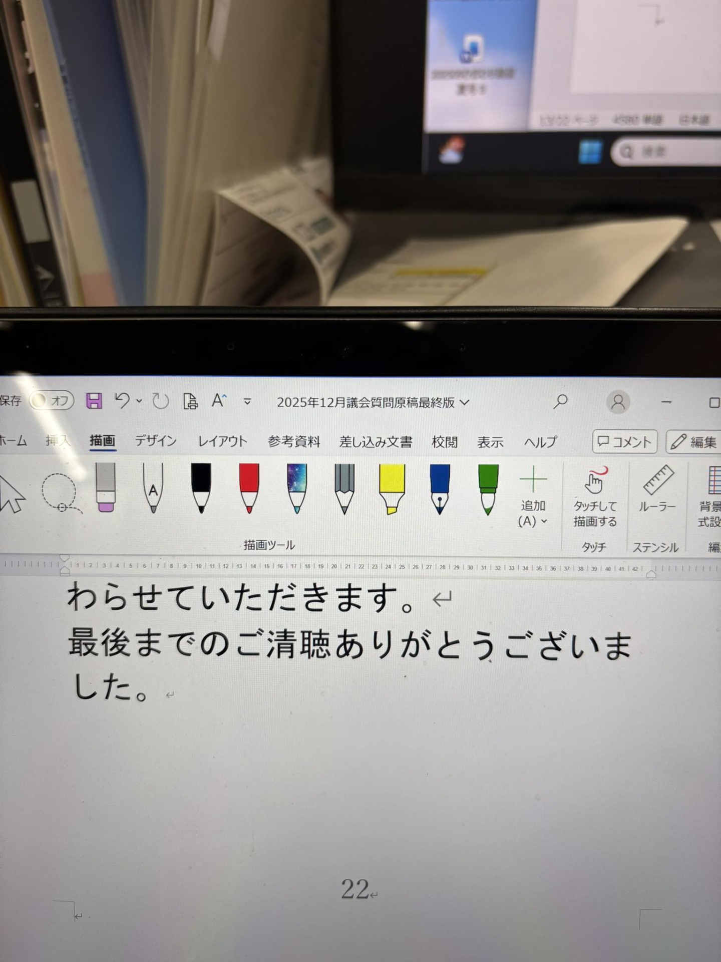 今日は、議会質問2日目で未来クラブからは、真田議員さんが登壇しました。