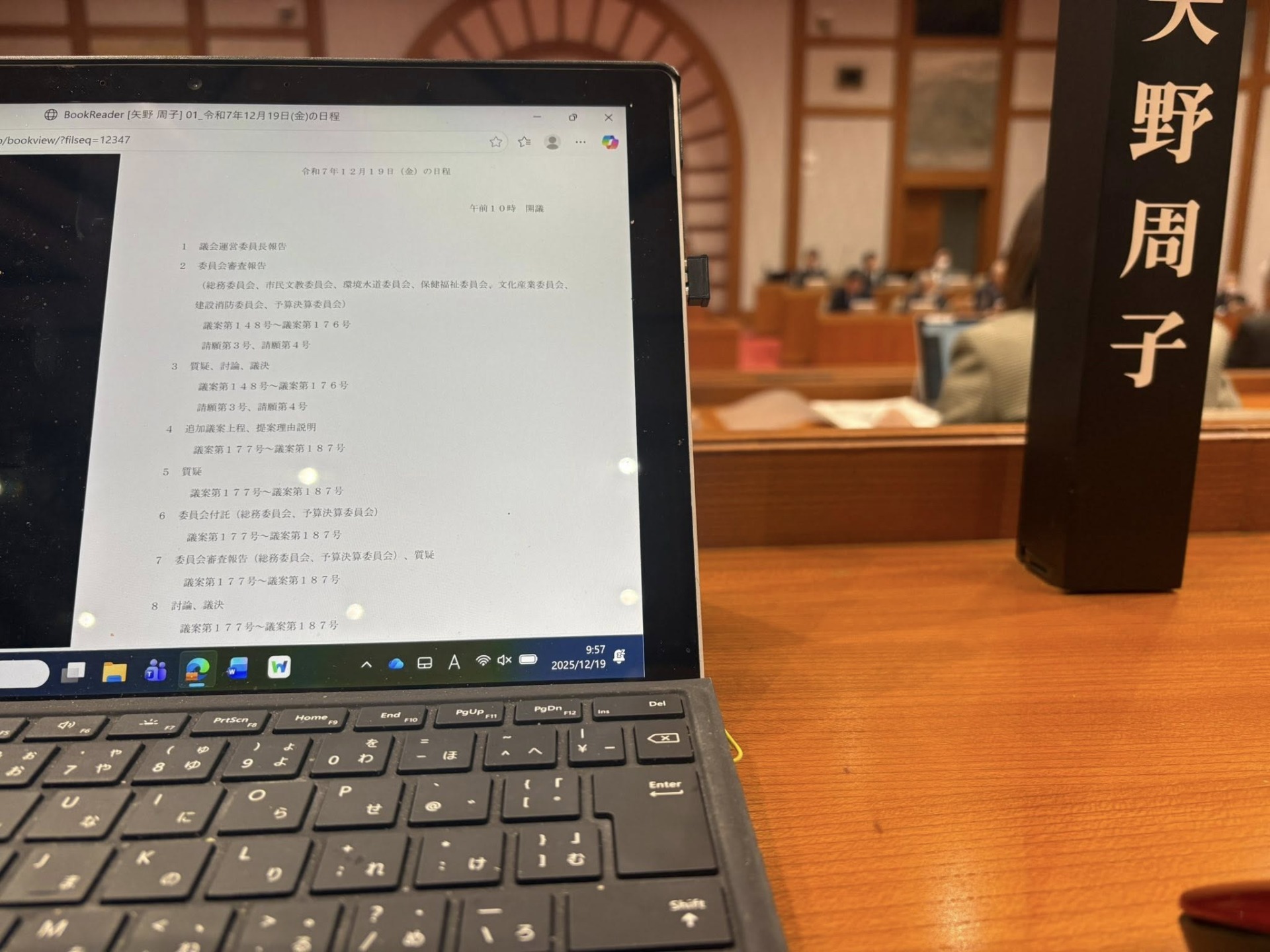 議会閉会日 活動報告 2025-12-19 議会閉会日でした。 議案は、全て可決されました。 ひまわり通信を仕上げ、印刷所にまわしました。 夕方から、宙の会講演会の打ち合わせをしました。 年末に向けて、大掃除、おせち料理、がんばります。