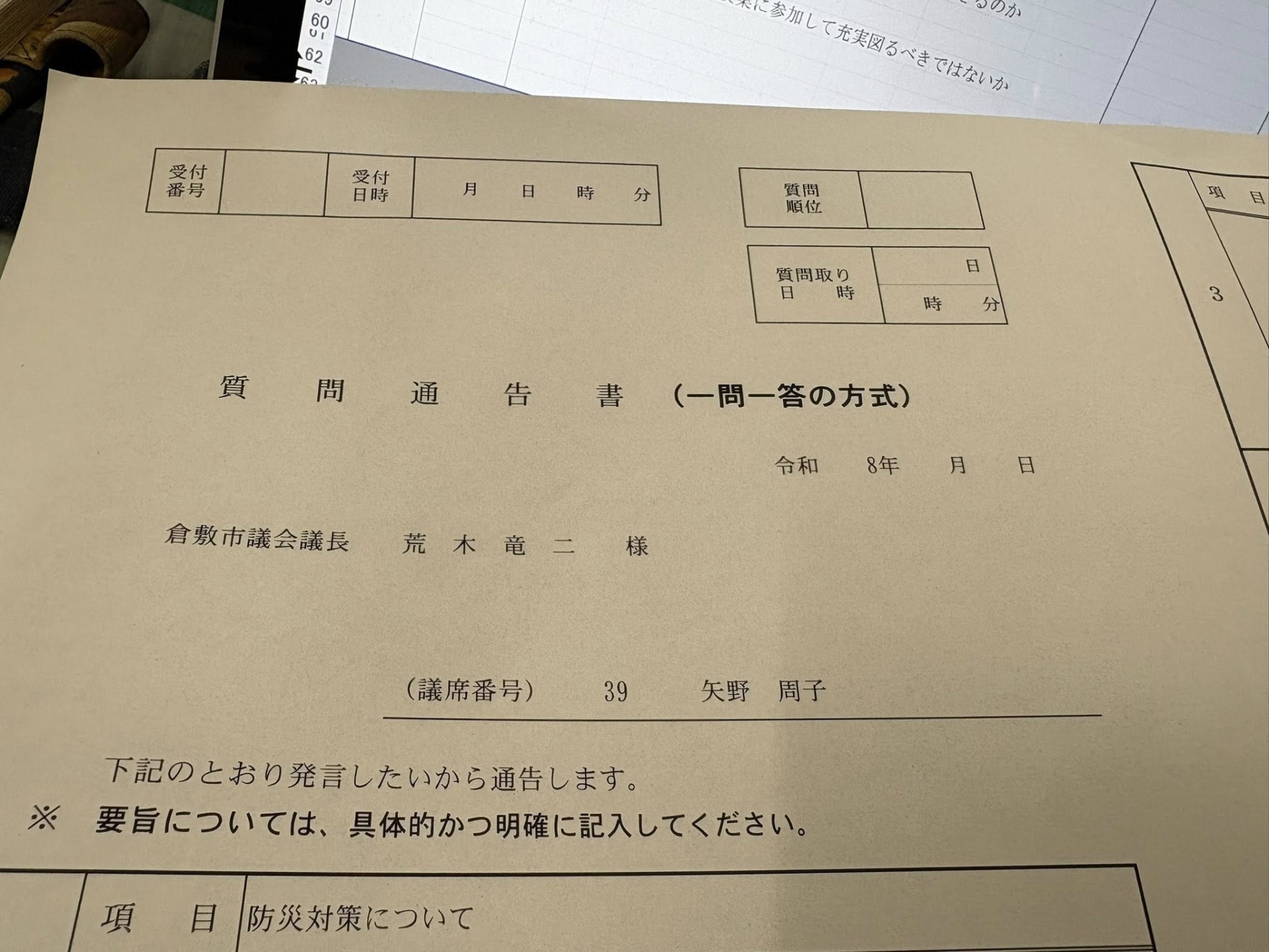 明日には、一般質問通告書を出そうかと思っています。再度、チェックをしてから!